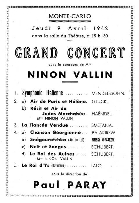 Mais la guerre interrompt, une nouvelle fois, l'activité musicale de Paul Paray, qui démissionne de sa présidence lorsque les autorités d'occupation lui réclament les noms de ses musiciens israélites et entreprennent de débaptiser l'orchestre (sous le prétexte qu'Eugène Colonne, son fondateur, était juif). Il quitte Paris en octobre 1940 et s'exile à Marseille, alors en "zone libre", puis à Monaco en automne 1941, où la Principauté lui offrira le poste de premier chef d'orchestre et co-directeur de l'Opéra. Au cours de cette période, il recrute et protège des musiciens juifs chassés de l'Orchestre National en juillet 1941, et menacés sur le sol de France. Son concert de Lyon du 21 mai 1942, organisé à l'initiative de journalistes résistants - en réponse à la visite du Berliner Philharmoniker emmené par Clemens Krauss - sonne comme un défi à l'Allemagne nazie.