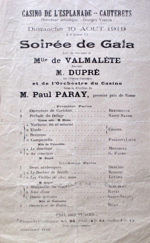 De retour en France, affaibli par sa longue captivité, Paul Paray espère entreprendre une carrière de pianiste-compositeur. Mais en été 1919, pressé par des nécessités économiques, il accepte de diriger l'orchestre du casino de Cauterets, et y fait une expérience décisive : il se découvre "un bras", le talent de faire partir un orchestre, dont les plus grands compositeurs ont souvent été privés. Dès son premier concert à Paris, le 29 février 1920 - Camille Chevillard l'ayant invité à remplacer André Caplet, malade - Paul Paray conduit un programme audacieux (Wagner, Berlioz, Chabrier, Duparc, Debussy) qui soulève l'enthousiasme du public de la salle Gaveau. Il est immédiatement nommé chef-adjoint de Chevillard, qui lui apprendra les "ficelles" du métier. Huit mois plus tard, il est élu Directeur de l'Orchestre des Concerts Lamoureux, et en deviendra Président après la mort de Camille Chevillard, en juin 1923.